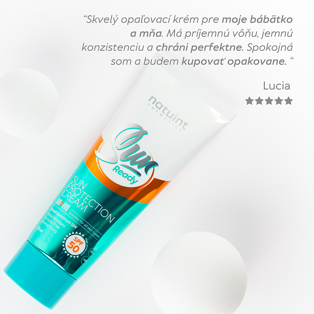 Prípadne pre telo pozrite aj náš telový ochranný krémik - https://www.dulcia.sk/ochranne-kremy-s-spf/sun-ready-spf-50.html Tento telový však zanecháva jemný biely film (nič veľké, iba jemnučký) a môžete ho použiť aj pre detičky či pokožku celého tela práve pri mori :)